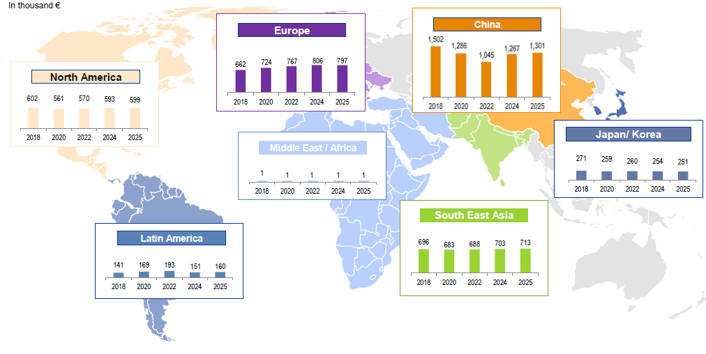 - Sales in China will show a further growth within the next years. Chinese sales will be higher than the combined sales of the rest of Asia and North America