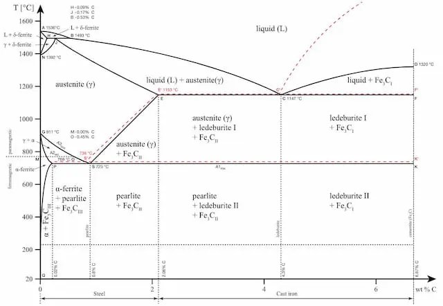 Let’s use the iron-carbon phase diagram as an example because it’s the most well-known and widely taught at universities.