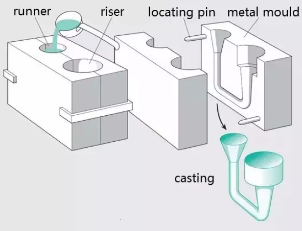 金屬型鑄造:指液態金屬在重力作用下充填金屬鑄型并在型中冷卻凝固而獲得鑄件的一種成型方法。