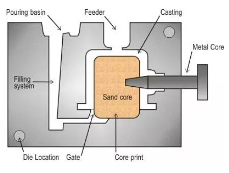 1、金屬型本身無透氣性,必須采用一定的措施導出型腔中的空氣和砂芯所產生的氣體;