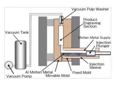 真空鑄造:通過在壓鑄過程中抽除壓鑄模具型腔內的氣體而消除或顯著減少壓鑄件內的氣孔和溶解氣體,從而提高壓鑄件力學性能和表面質量的先進壓鑄工藝。
