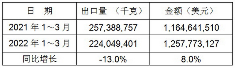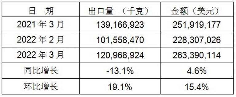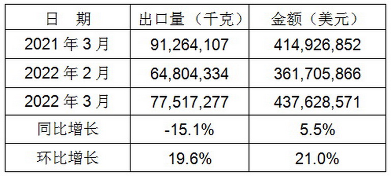 1~3月鋁合金車輪共計出口22.41萬噸,同比增長-13.0%。其中:3月份出口7.75萬噸,同比增長-15.1%,環比增長19.6%,見表7和表8。