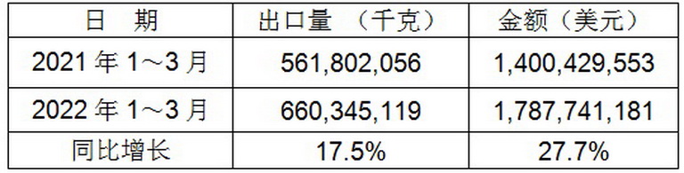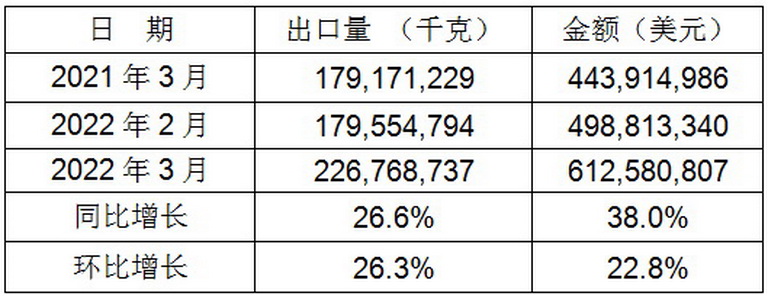 1~3月5個稅則號汽車零部件合計出口66.03萬噸,同比增長17.5%。其中:3月份出口22.68萬噸,同比增長26.6%,環比增長26.3%,見表5和表6;