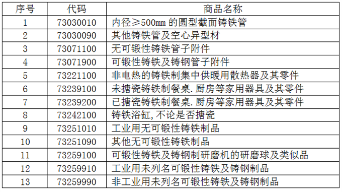 一、13個稅則號黑色鑄件出口情況