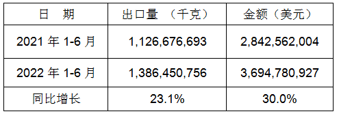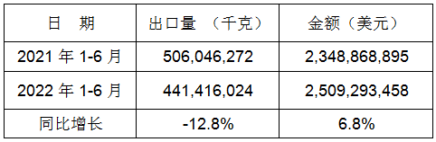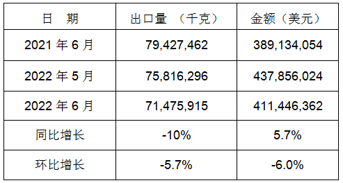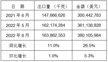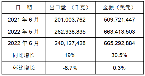 表8:2022年6月同比、環比出口情況